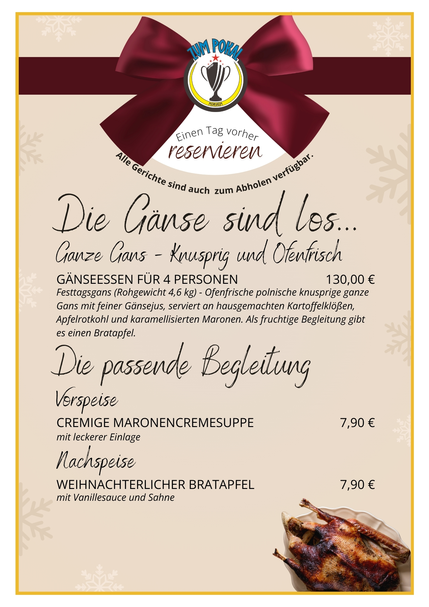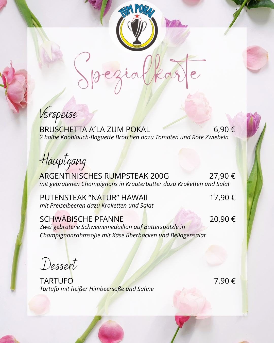 Herzlich Willkommen im Restaurant „Zum Pokal“ in Monsheim, wo frische Zutaten und höchste Qualität die Grundlage unserer Gerichte bilden. Bei uns können Sie sich zurücklehnen, verwöhnen lassen und jeden Bissen in vollen Zügen genießen. Unser Küchenteam bereitet jede Speise mit einer großen Portion Liebe und Leidenschaft zu, um Ihren Gaumen zu verwöhnen.